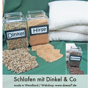 Wählen Sie grundsätzlich nur Spelzen aus regionalem kontrolliert biologischen Anbau (kbA). Nur so können Sie sicher sein, dass die Spelzen keine Reste von Insektenschutz- und Pflanzenschutzmitteln enthalten können. Die besten Stützeigenschaften und den höchsten Lufteinschluss hat Dinkelspelz. Also bestens geeignet bei den oben genannten Problemen. Dinkelspelz raschelt etwas, was gewöhnungsbedürftig bei geräuschempfindlichen Personen sein kann. Dinkelspelz duftet sanft nach Heu und Stroh, was das Einschlafen sogar fördern kann. Dinkelspelzkissen sind preiswert und sehr bekannt. Wer es leiser und sanfter haben möchte, der kann auf Hirsespelzen ausweichen, da die Spelzen sehr klein sind und praktisch geräuschlos im Kissen „fließen“ und geruchlos sind. Hirsespelzkissen haben zudem eine sehr sanfte Oberfläche auf dem Kissen und sind insgesamt etwas schwerer als Dinkelspelzkissen, was bei unruhigen Schläfern von Vorteil sein kann.